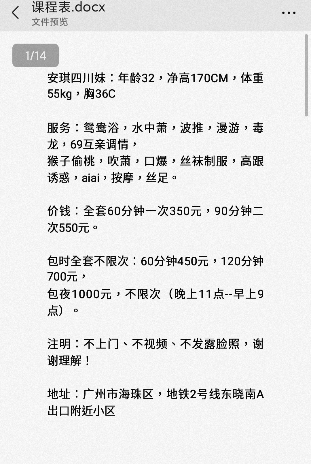 位置海珠东晓南,地铁口出来走点路,指挥上去。环境整洁。外貌:照片8成,成熟妩媚,眼神和语气温柔硬件: ...